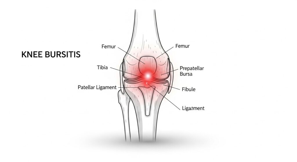 Bursa ialah kantung kecil yang berisi cecair (cecair sinovial). Fungsinya macam “kusyen lembut” di antara tulang, tendon dan otot — supaya pergerakan lutut jadi lebih lancar dan tak berlaku geseran berlebihan.