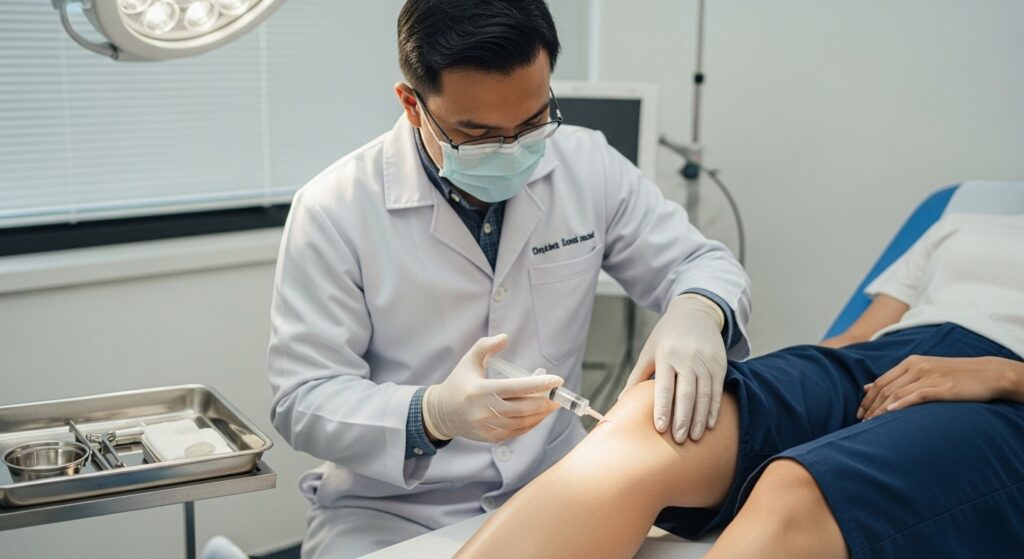 Jika bengkak/keradangan tidak berkurang selepas rawatan asas, doktor mungkin cadangkan suntikan intra‑bursa.