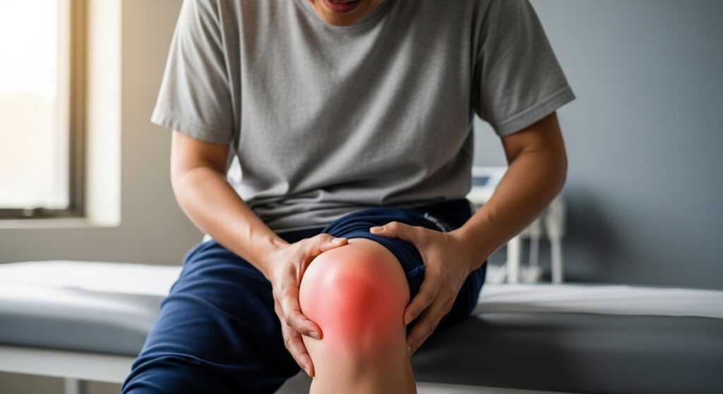 • Lutut merah, panas dan disertai demam (mungkin tanda jangkitan).