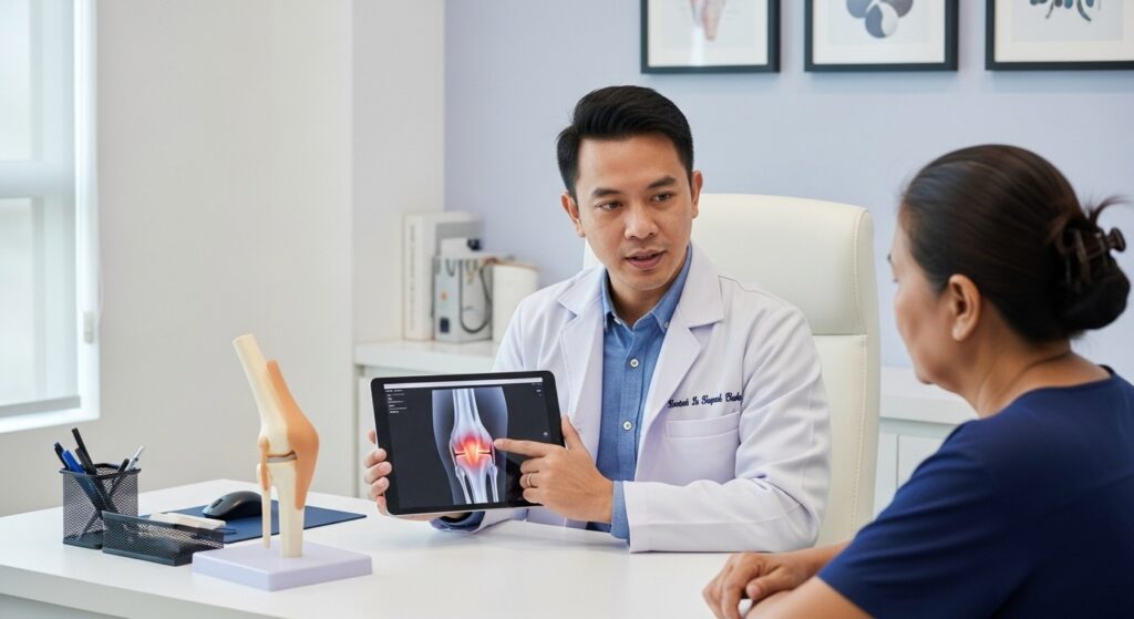 Di Klinik Vista Pontian, proses diagnosis biasanya bermula dengan penilaian yang teliti untuk memahami punca sebenar sakit lutut dan tahap kecederaan yang berlaku.